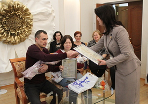 От администрации города Коврова родителям двойни глава города вручила поздравительный адрес, свидетельства о рождении каждого ребенка, цветы и подарки. По окончании праздника – традиционное фото на память.