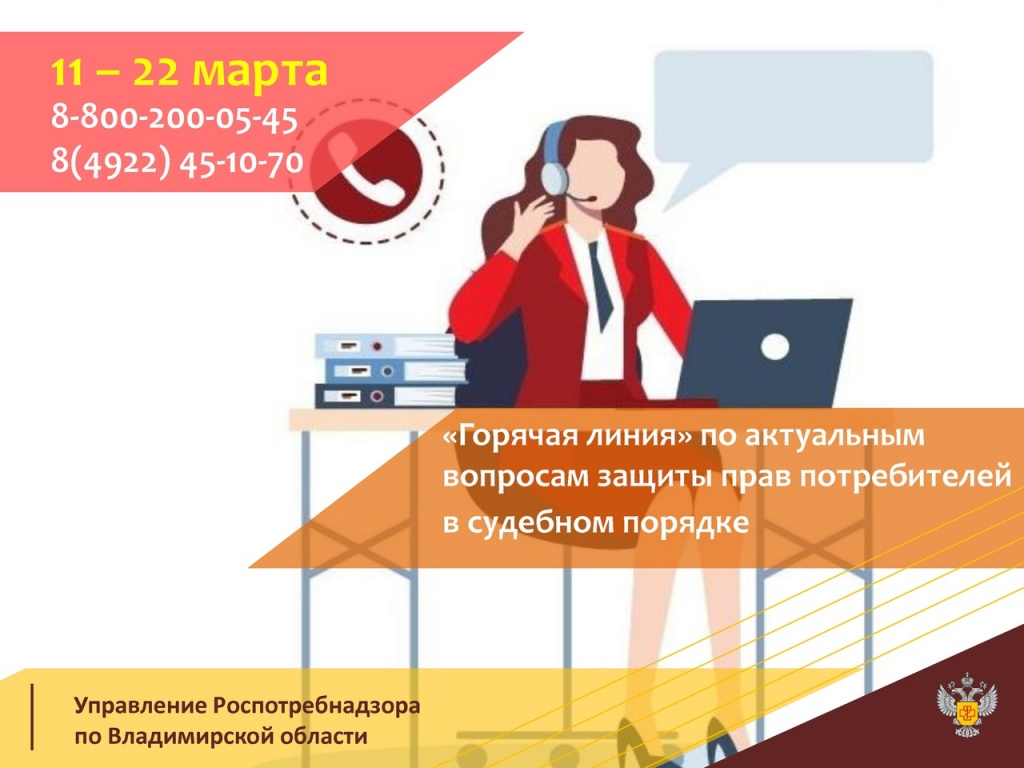 Консультирование пройдет с 11 по 22 марта. Специалисты Роспотребнадзора ответят на вопросы, касающиеся реализации федерального закона о защите прав потребителей, помогут в оформлении претензий в адрес организаций,