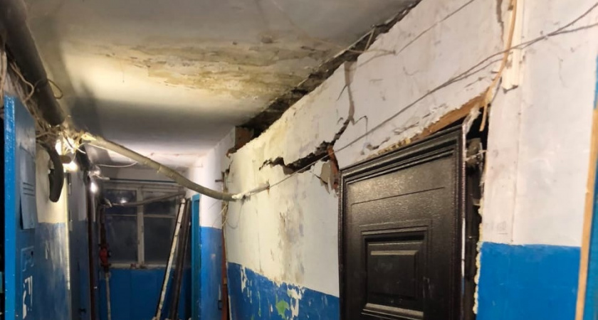 5 января около 21:30 в региональную прокуратуру поступило сообщение о том, что в первом подъезде на первом этаже дома №4а по улице Коммунистическая просела стена, а на стенах и потолке образовались трещины. Дом 1969 года постройки.